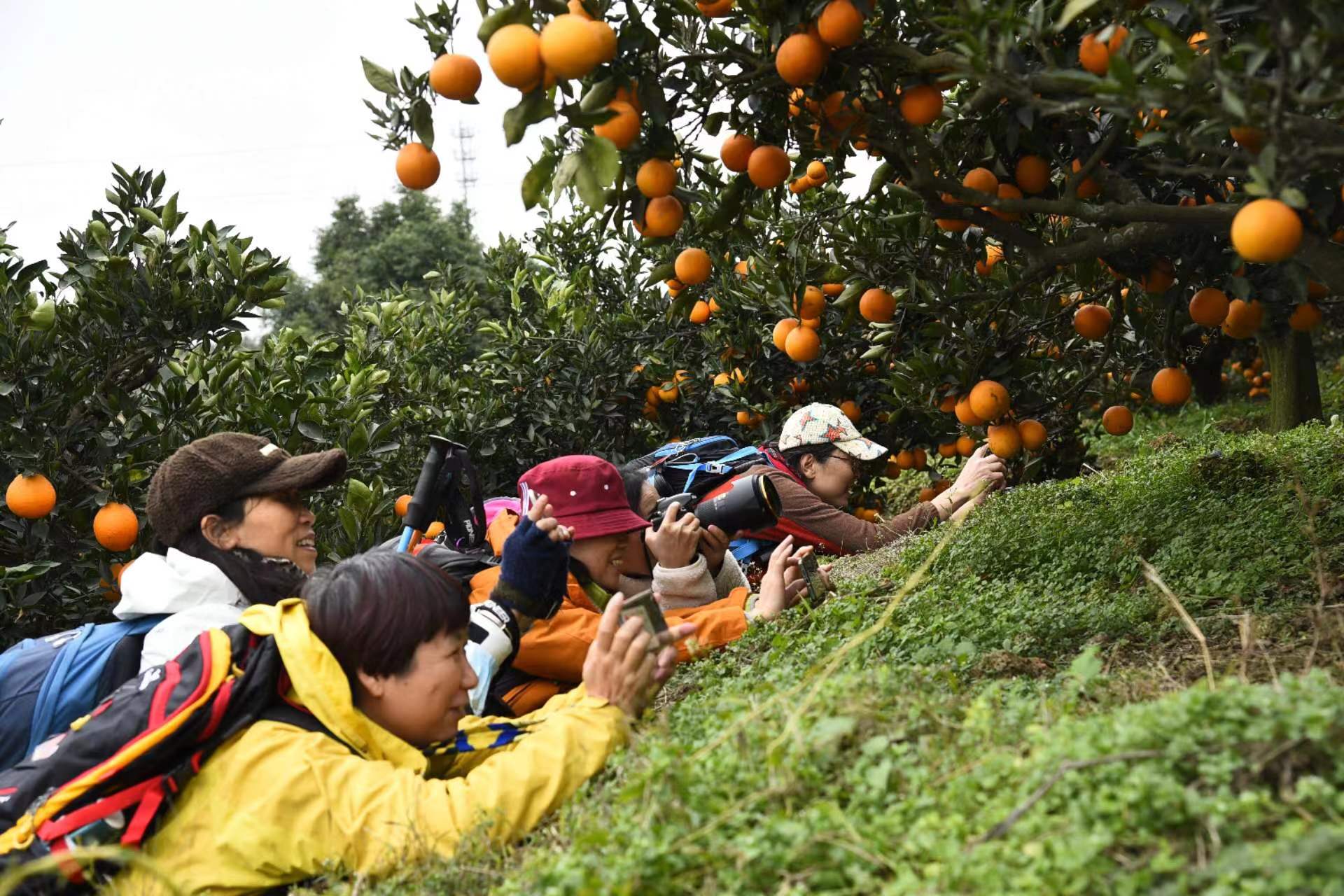 B线:直接坐车到农家,可以周边拍照,中午一起AA午餐,下午去环线徒步4公里拍照,采摘脐橙。
